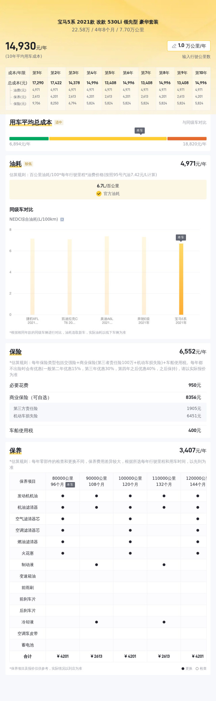 根据估算,这辆车年均综合用车成本大概在每年1.5万元左右。这项花销是跟车主的实际用车场景和使用强度有直接变化的。
