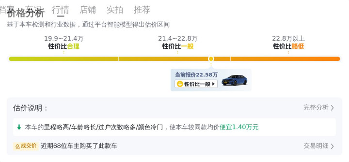 当前市场上,这款车型的二手车价格大约在21.63万到26.11万之间。需要说明的是,这只是根据已售出车辆的数据得出的一个大致范围,实际价格会受到车辆状况等因素的显著影响。